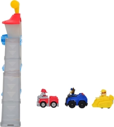 Erlebt Action wie in Adventure Bay! Dieser Turm mit langer Rampe und bunten Plattformen verweist originalgetreu auf die beliebte Welt von PAW Patrol. Enthalten sind 3 Mini-Autos mit Figuren – das Polizeiauto von Chase, das Feuerwehrauto von Marshall und Rubbles Bulldozer – bereit für die nächste Rettungsmission.