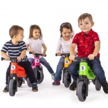 Starten Sie mit dem stabilen Dreirad und wechseln Sie, sobald die Balance geübt werden soll, einfach von zwei Hinterrädern auf eines. Ideal für den fließenden Übergang zum ersten Fahrrad.