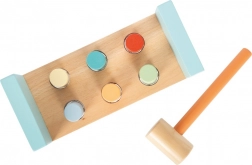 Das Hämmern der bunten Stifte unterstützt einen präzisen Griff, die Hand-Auge-Koordination und die Geduld der Kinder schon ab dem frühen Alter.