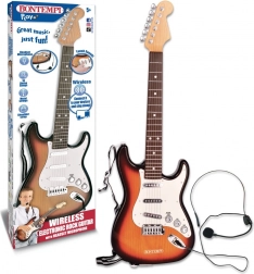 Diese stylische elektrische Kinder-Gitarre ist ideal für die ersten Schritte in die Welt der Musik. Sie bietet eine kabellose Verbindung, sodass Kinder sich beim Spielen und Singen frei bewegen können. Im Lieferumfang enthalten sind ein Mikrofon mit Headset sowie ein praktischer Schultergurt für ein authentisches Konzertgefühl.