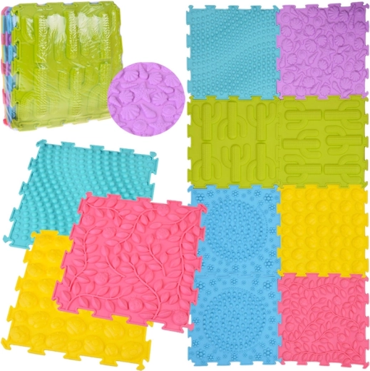 Die Reliefoberfläche unterstützt das korrekte Fußgewölbe, Gleichgewicht und Koordination sowie die Stimulation der Rezeptoren an den Fußsohlen. Perfekt für Übungen zu Hause, Spielzimmer, Kindergärten und Aktivitäten der sensorischen Integration. Dank der einfachen Reinigung und des robusten Materials ideal für den täglichen Gebrauch.