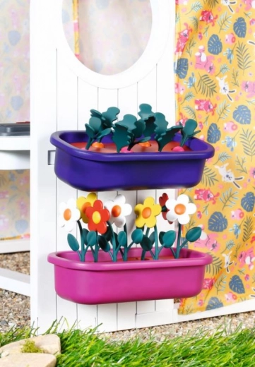 Das Wochenendhaus bietet viel Raum für fantasievolles Spielen und enthält Spielelemente wie Blumenkästen und Küchenutensilien.