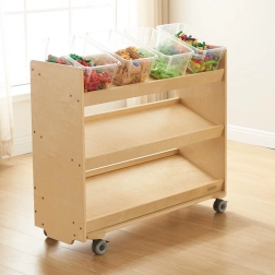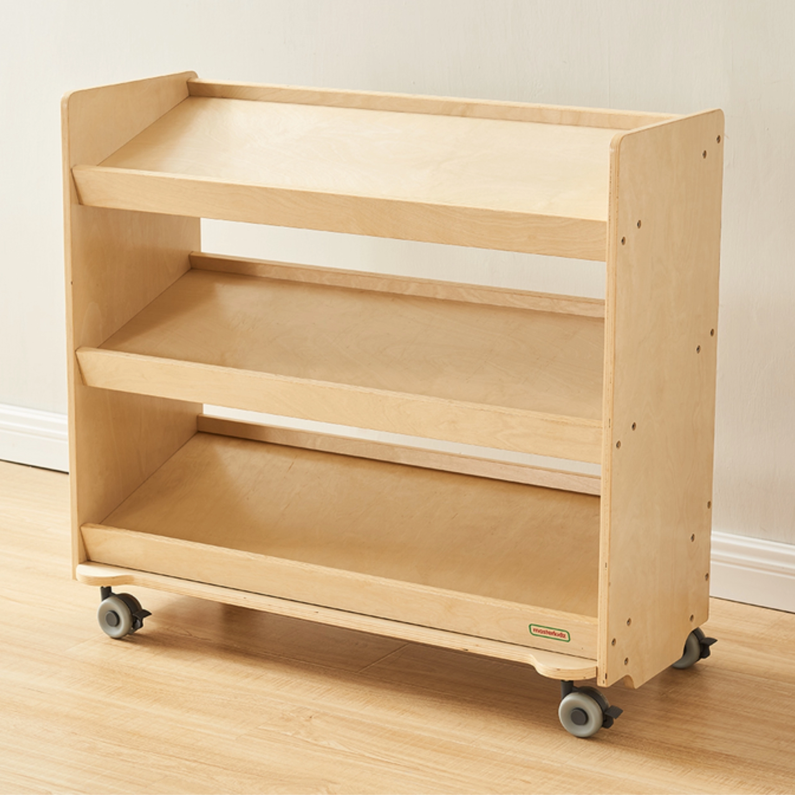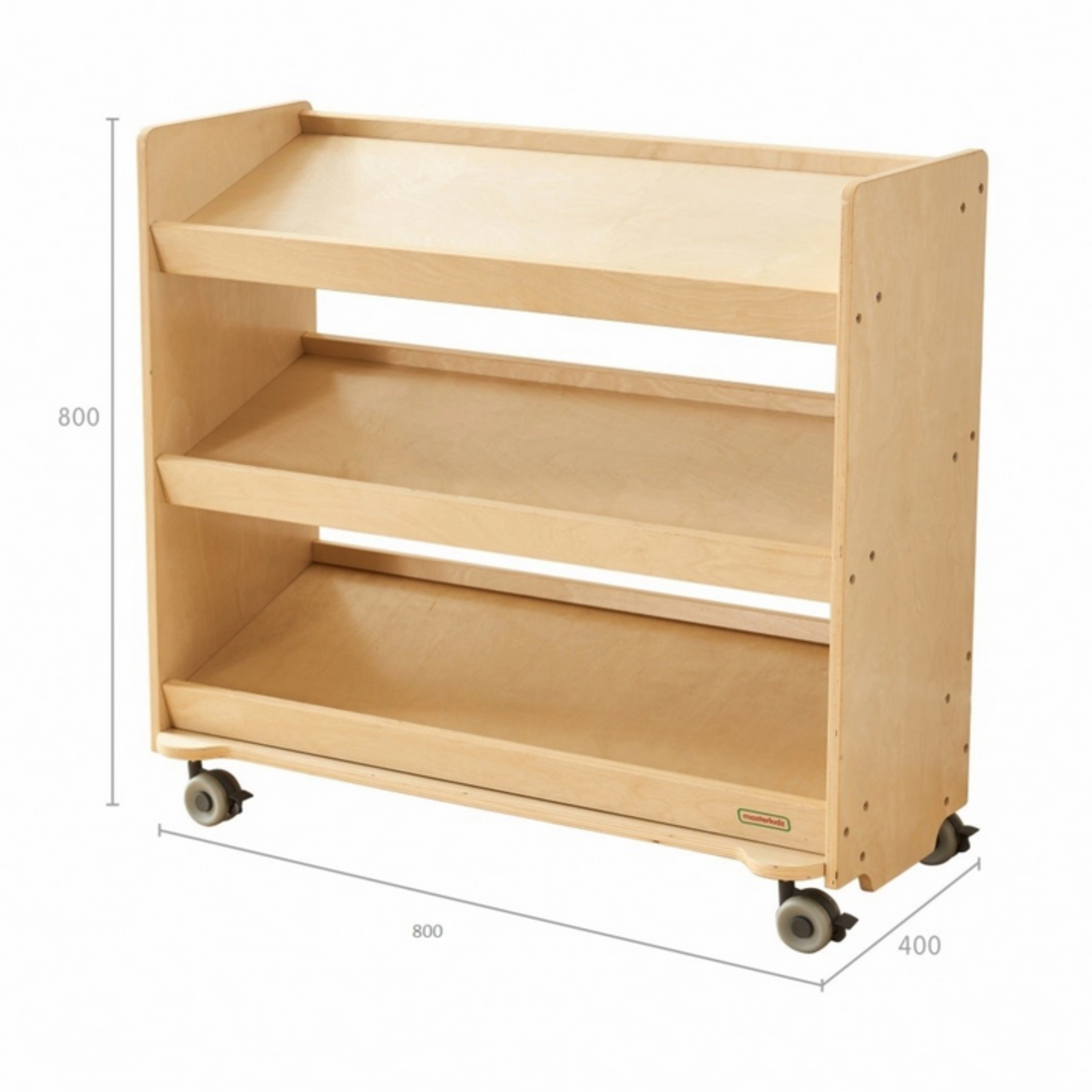 Der praktische mobile Masterkidz-Regalwagen mit drei schrägen Ablagen bietet eine mobile und übersichtliche Aufbewahrung für Lehr- und Kreativmaterialien. Dank der robusten Holzkonstruktion, feststellbaren Rollen und offenen Ablagen haben Kinder alles sicher zur Hand und gut im Blick – ideal für Klassenräume, Spielzimmer und Ateliers.