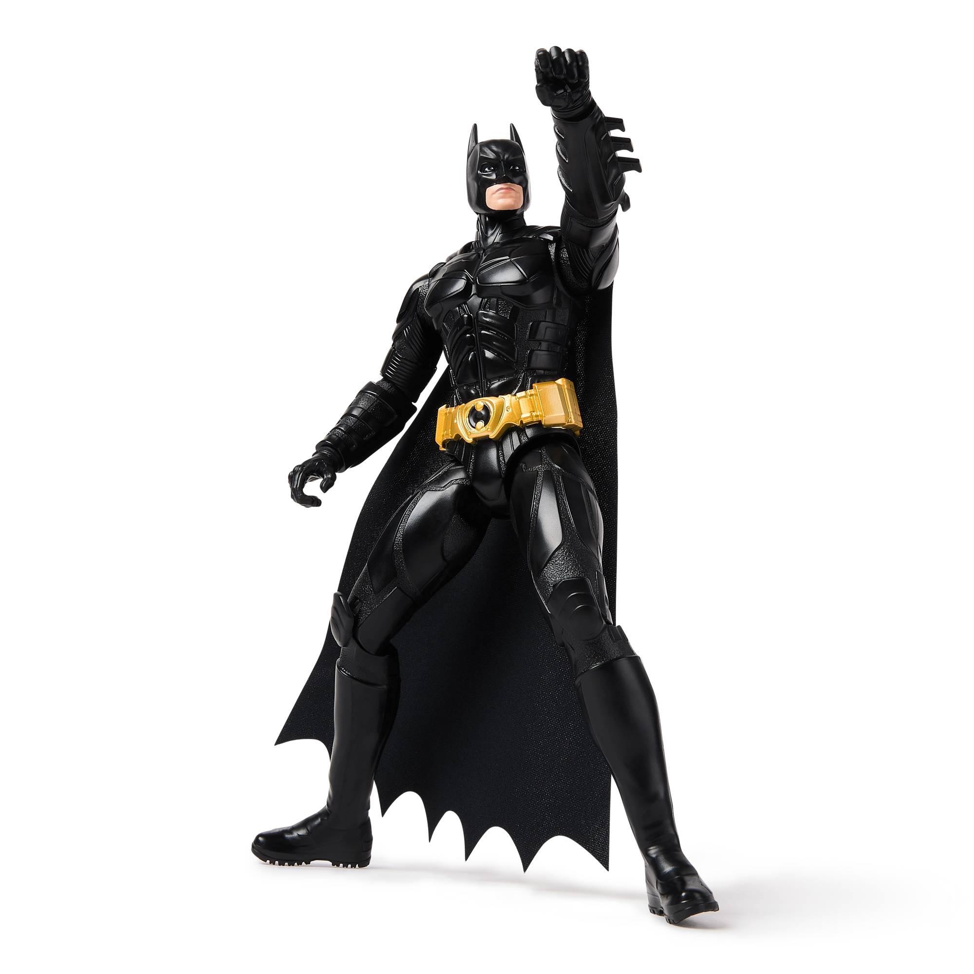 Diese detailreich gestaltete BATMAN-Figur in schwarzer Rüstung mit goldenem Gürtel ist 30 cm hoch und bietet mehrere Artikulationspunkte für beeindruckende Posen. Perfekt für Sammler und für kreatives Kinderspiel.