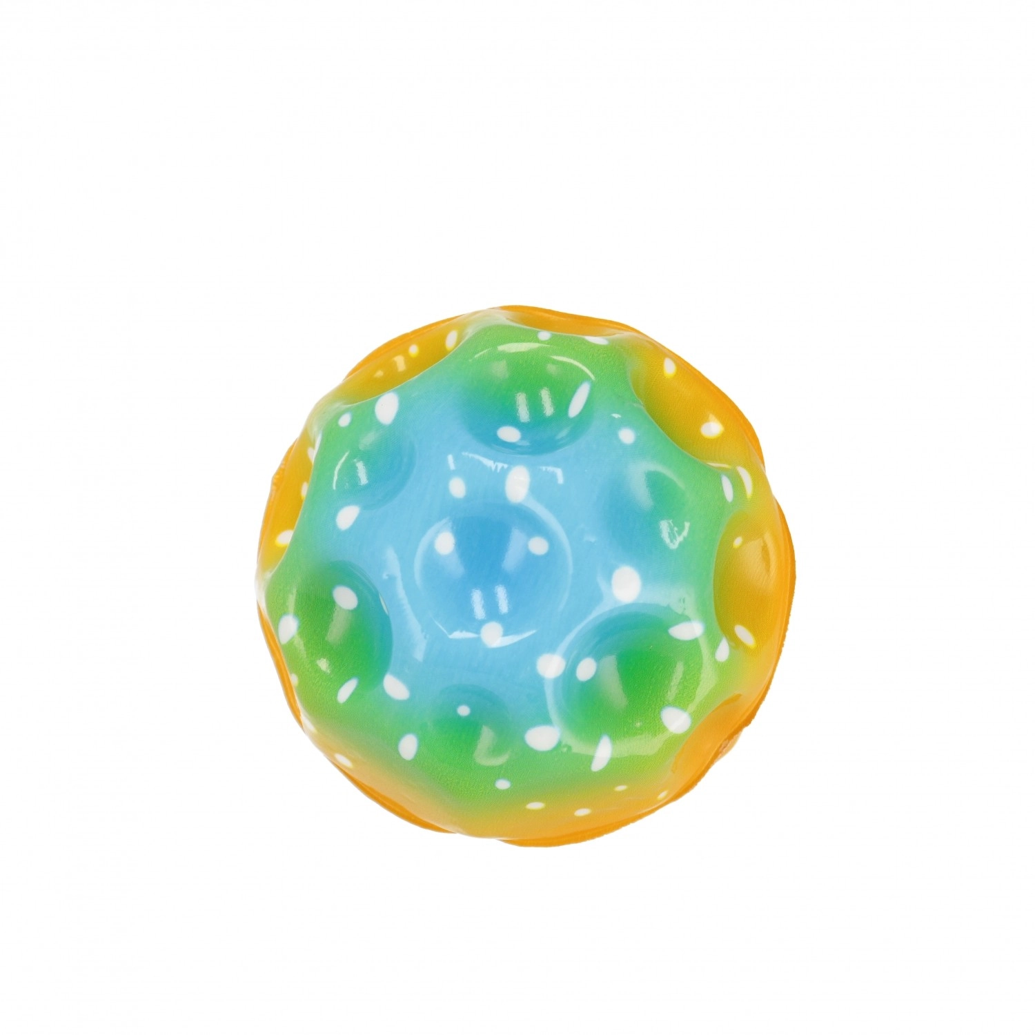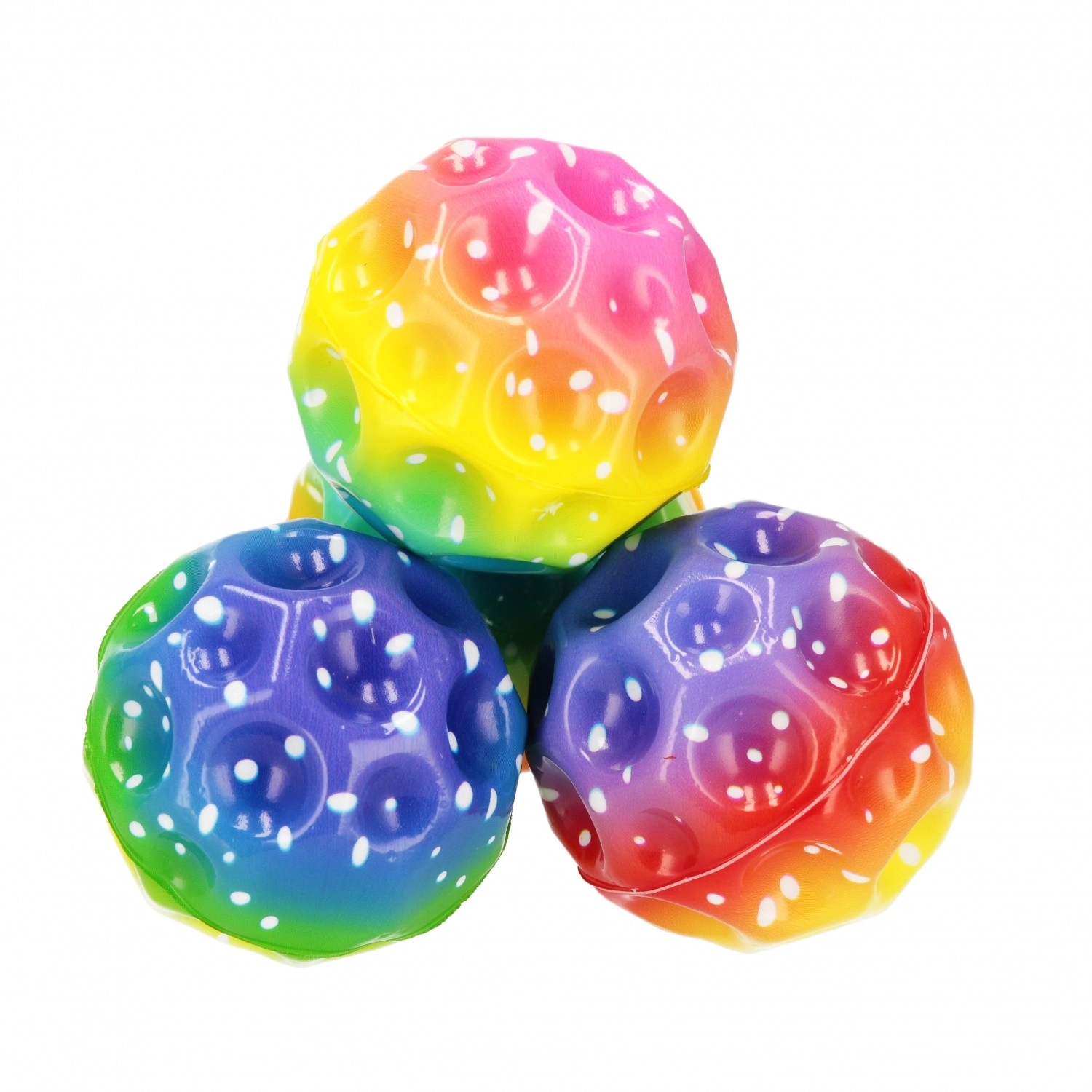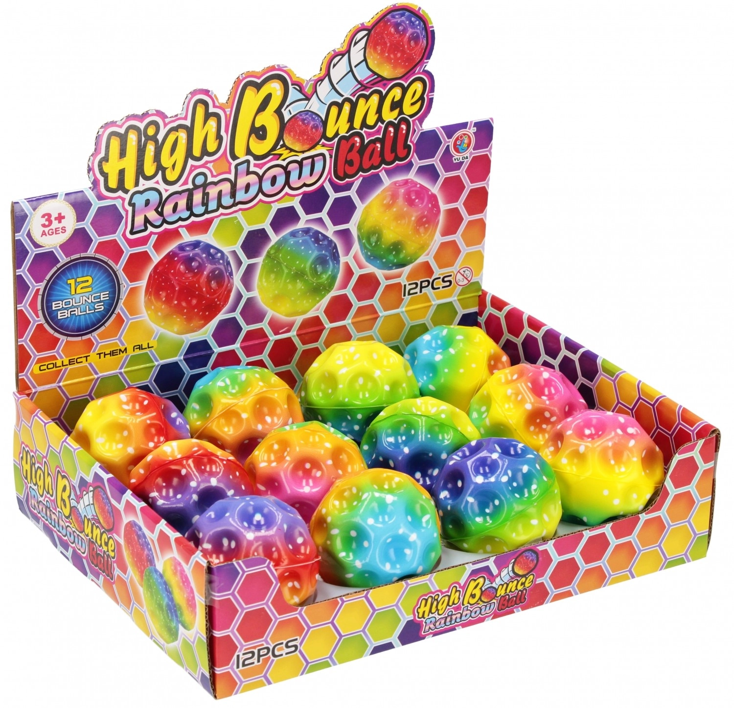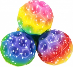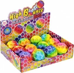 Lustiger regenbogenfarbener Hüpfball mit hohem Rückprall für Kinder und Erwachsene. Seine unvorhersehbaren Sprünge beleben jedes Spiel und fördern aktive Bewegung drinnen und draußen. Die strukturierte Oberfläche liegt gut in der Hand und bietet sensorische Stimulation. Geeignet ab 3 Jahren. Preis pro 1 Stück.
