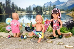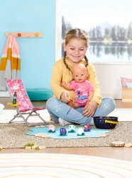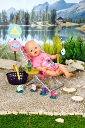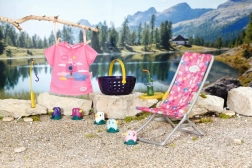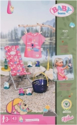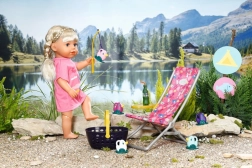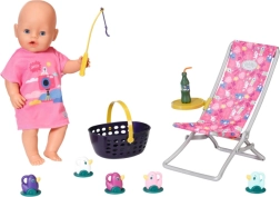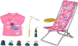BABY born Wochenend-Angelset enthält Outfit, Liegestuhl mit Tischchen, Limonadenflasche, Korb, 5 Entchen und eine Angelrute.