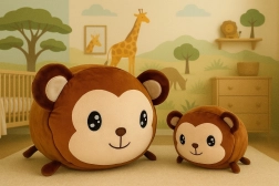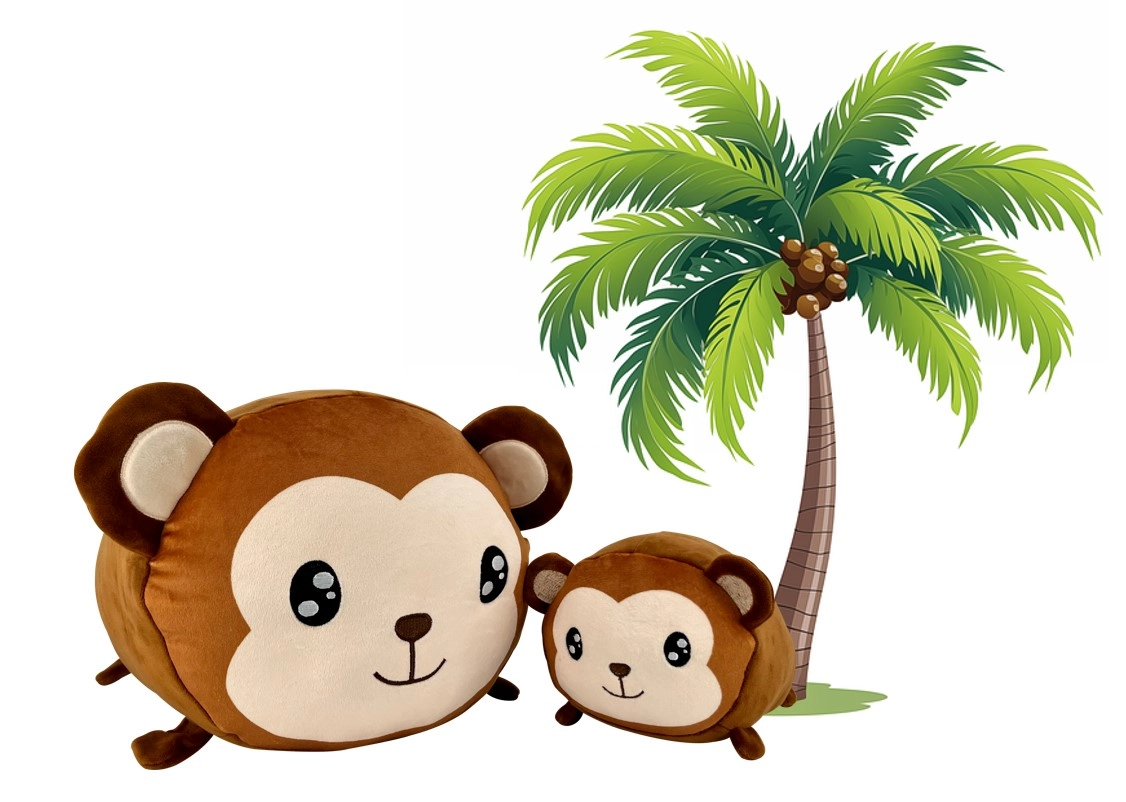 Dieses Set aus Plüschäffchen bringt maximalen Komfort und endlose Umarmungen. Das kleinere Äffchen (20 cm) ist ideal als erstes Kuscheltier für die Kleinsten, das größere Äffchen (40 cm) dient hervorragend als weiches Kissen für unterwegs, im Auto oder als stilvolle Deko im Kinderzimmer.