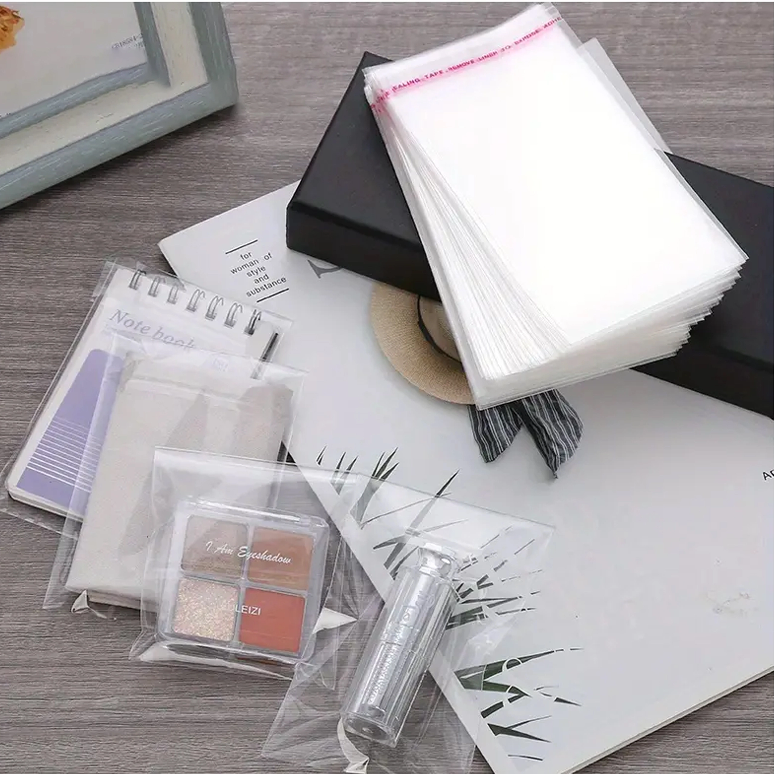 Transparente Beutel aus fester und dehnungsresistenter OPP-Folie sorgen für eine elegante Optik und zuverlässigen Schutz vor Staub und Feuchtigkeit. Dank der selbstklebenden Klappe ist das Verschließen schnell, fest und bei Bedarf wiederverschließbar.