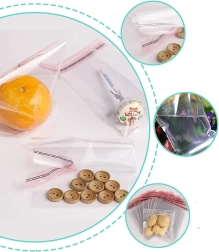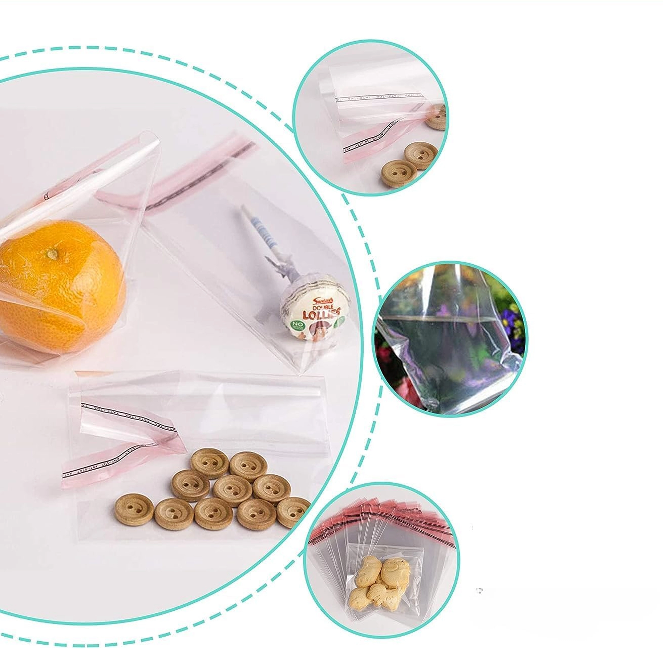 Die selbstklebende Lasche ermöglicht ein schnelles Verschließen ohne Werkzeug; der Kleber hält sicher und erlaubt dennoch ein erneutes Öffnen und Wiederverschließen. Dank der Zertifizierung für Lebensmittelkontakt sind die Beutel ideal für Kekse, Süßwaren oder Gebäck.