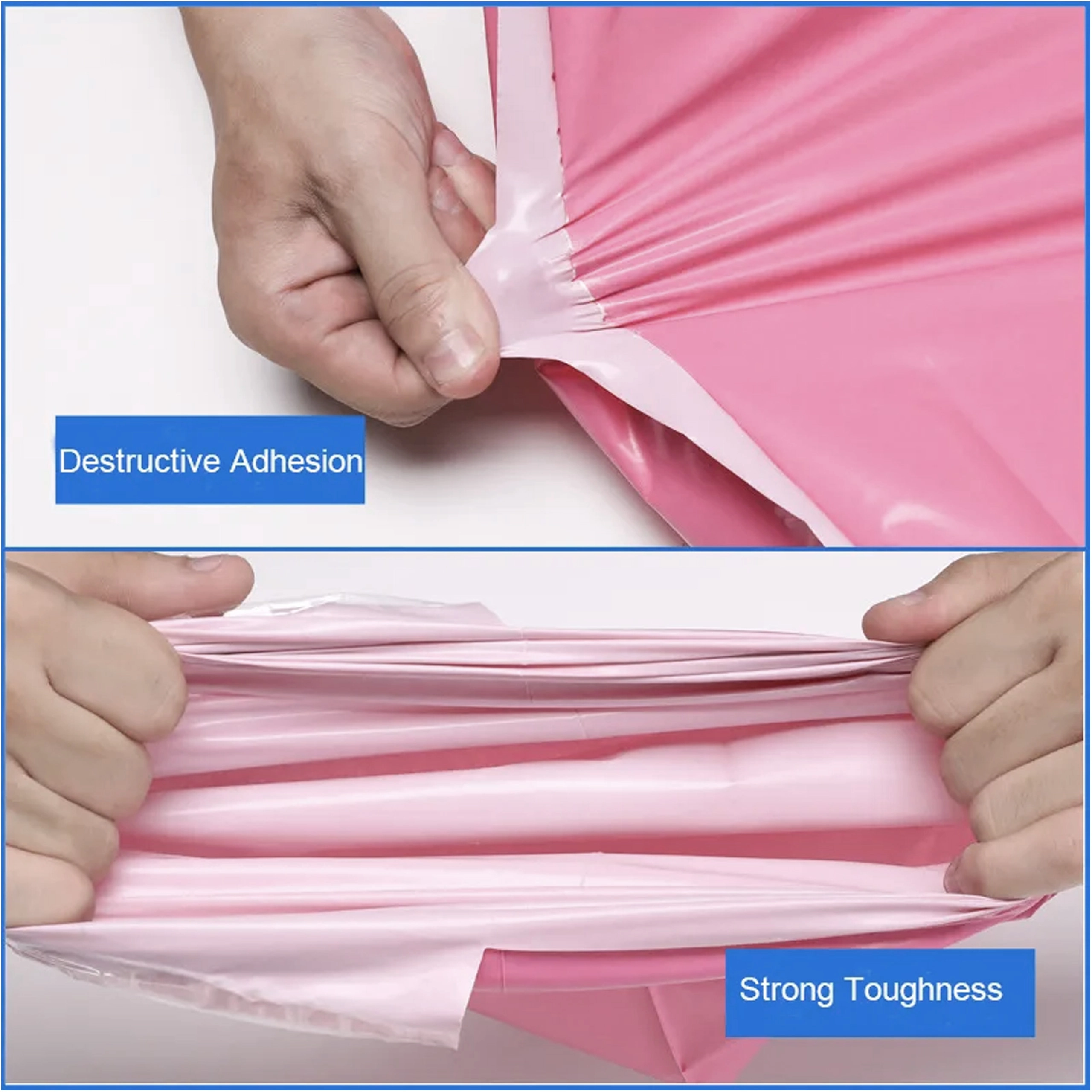 Hochwertige rosa Versandtaschen aus robuster LDPE‑Folie sorgen dafür, dass Ihre Ware unversehrt ankommt. Dank des selbstklebenden Streifens verpacken Sie die Sendung in Sekunden, und nach dem Versiegeln ist die Sendung tamper‑evident – jeder Öffnungsversuch ist sichtbar. Das Material ist eine leichte und zugleich robuste Lösung für den täglichen Versand.