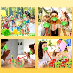 Masken mit elastischen Bändern sitzen Kindern wie Erwachsenen bequem. Die flexible „Zunge“ ermöglicht ein lustiges Treffen und Fangen der Ziele – sicher und mit viel Gelächter.