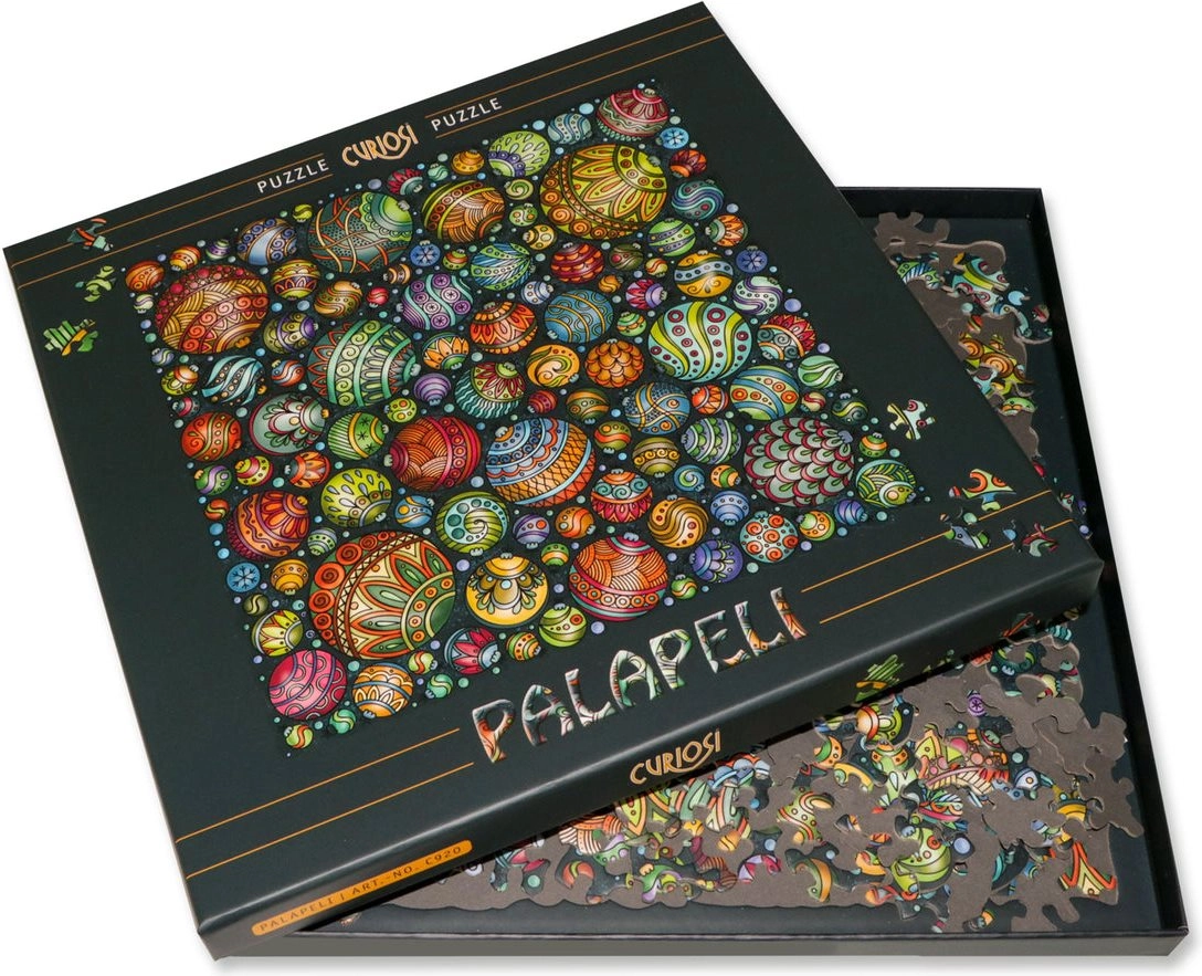 Genießen Sie ein einzigartiges Puzzle-Erlebnis mit Palapeli, das durch ein handgefertigtes, farbenfrohes Motiv voller lebendiger Kugeln besticht. Dank der ungewöhnlich geformten Teile ist das Puzzeln unterhaltsam, kreativ und visuell beeindruckend.