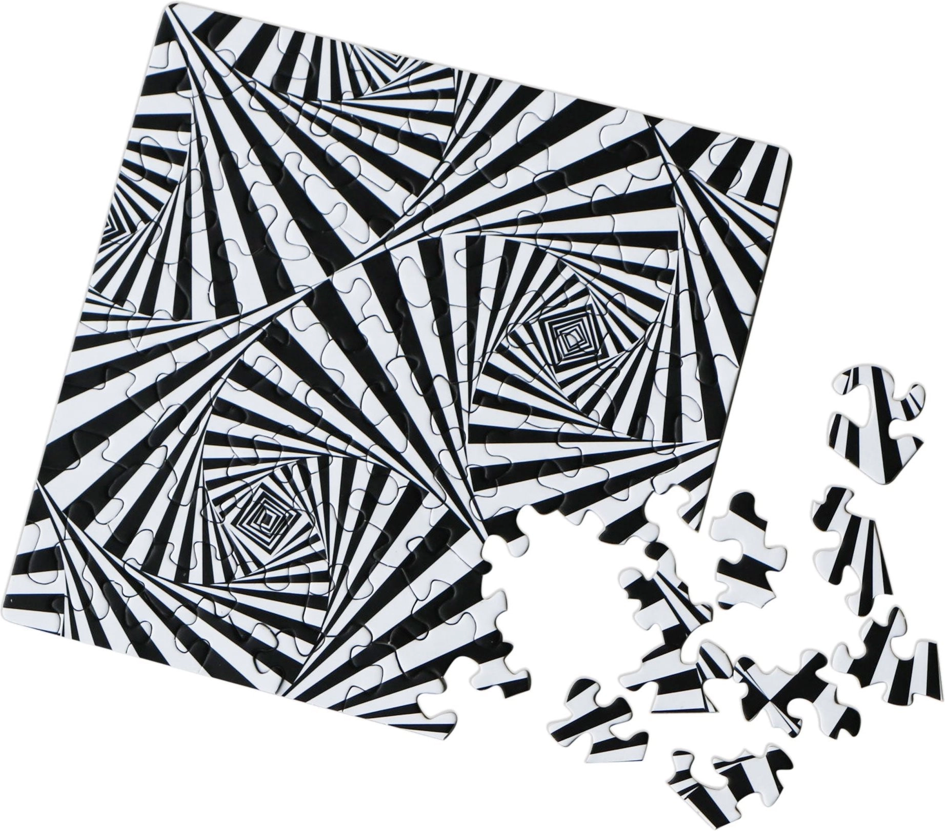Das quadratische Puzzle Q Shimmer: Illusion begeistert alle, die ein kompaktes und stilvolles Puzzle suchen. Dank der unkonventionellen Teilformen bietet es eine angenehme Herausforderung und zugleich einen originellen visuellen Effekt nach dem Zusammensetzen.