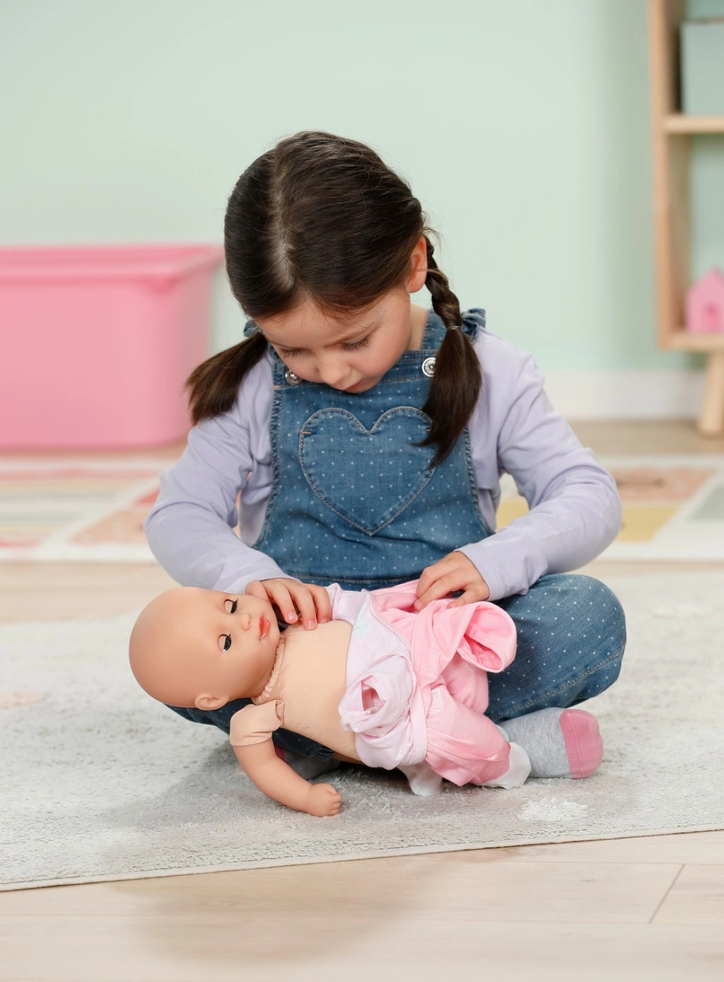 Diese Puppe unterstützt die Entwicklung von Empathie, Feinmotorik und Fantasie. Perfekt für Rollenspiele rund um die Babypflege – Füttern, Trösten und Einschlafen mit Schnuller. Alles ist intuitiv und sicher für kleine Hände.