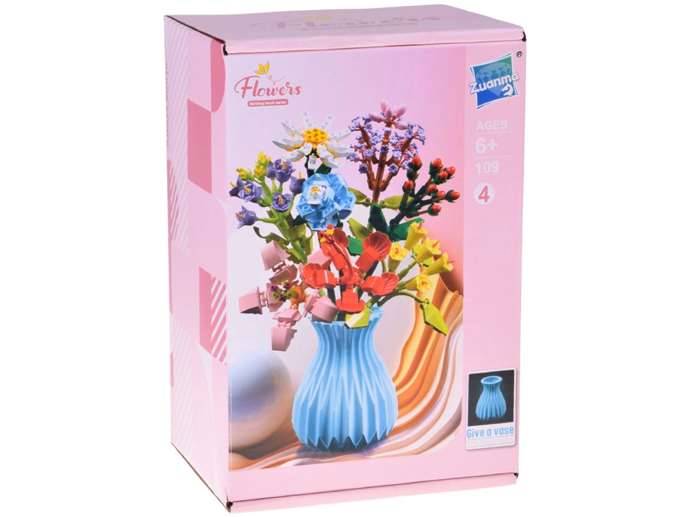 - Bauteile, 8× Bildanleitung (für jede Blume), Vase