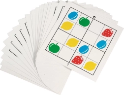 Kinder legen die Teile so, dass sich die Symbole in Reihen, Spalten und Quadranten nicht wiederholen – der ideale Einstieg in die Welt des Sudoku.