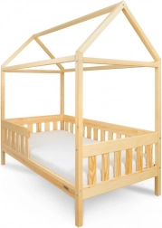 Kinderbett Haus mit Rausfallschutz und Lattenrost New Baby Castello 160 × 80 cm natur