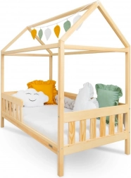 Das stylische Kinderbett in Hausform NEW BABY Castello in der Größe 160 × 80 cm vereint Sicherheit, Komfort und verspieltes Design. Es besteht aus massivem Kiefernholz, verfügt über einen Schutzrand gegen Stürze und enthält einen hochwertigen Lattenrost für gesunden Schlaf. Die natürliche Oberfläche ist mit sicheren Wasserlacken behandelt, und die niedrige Konstruktion erleichtert Kindern das selbstständige Hinlegen.