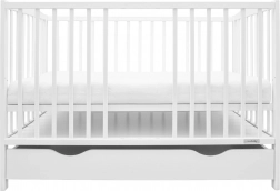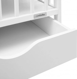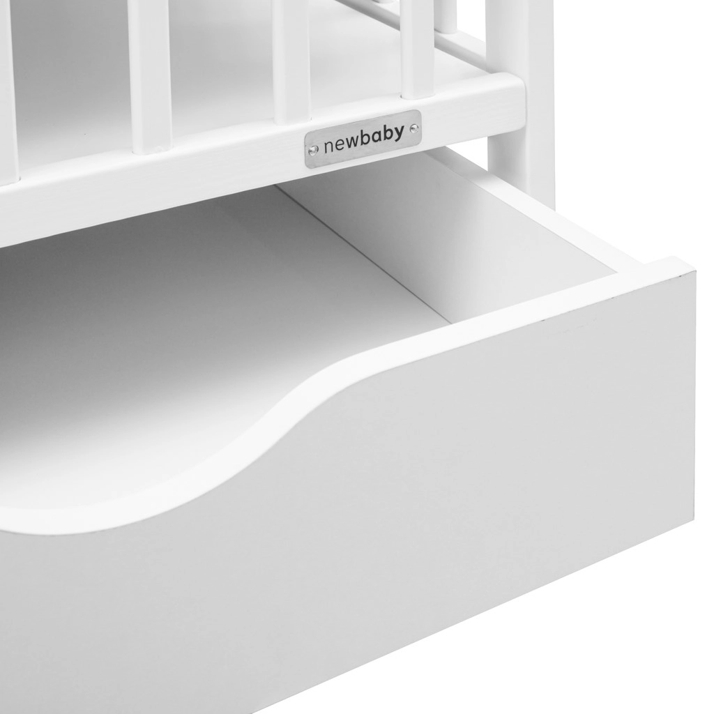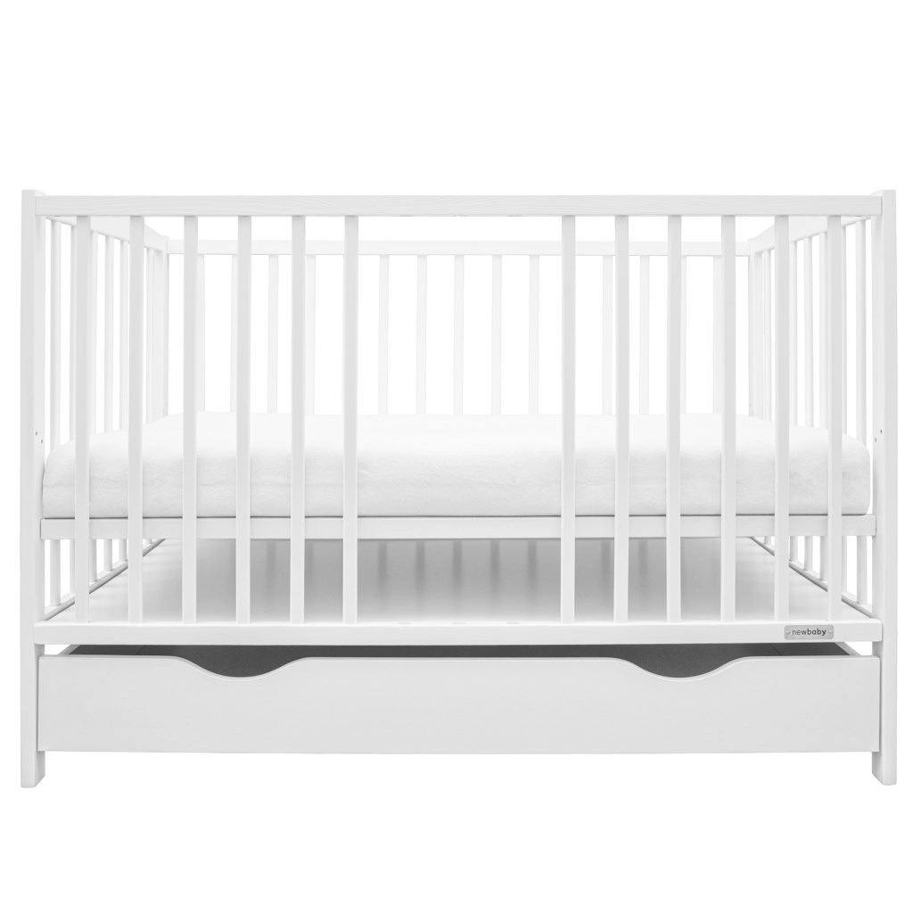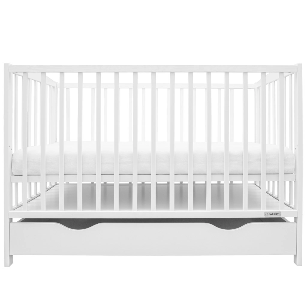 Das Kinderbett New Baby Lilly in elegantem Weiß vereint Sicherheit, eine praktische Schublade und hochwertiges Kiefernholz. Dank 3 höhenverstellbarer Lattenrostpositionen und drei herausnehmbaren Sprossen passt es sich leicht dem Wachstum des Babys und dem Alltag an. Die Zertifizierung nach EN 716 garantiert geprüfte Sicherheit und Zuverlässigkeit.