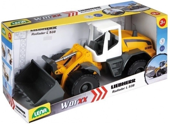 Der lizenzierte Kinder-Radlader LIEBHERR von LENA sorgt drinnen wie draußen für realistischen Bauspaß. Dank der beweglichen Schaufel und des Auslegers nimmt er mühelos Sand oder Kiesel auf, und die separat beweglichen Vorderräder machen die Fahrt spaßig und geschmeidig. Die robuste Konstruktion aus hochwertigem Kunststoff und die Metallachsen der Räder mit 6 mm Durchmesser gewährleisten eine lange Lebensdauer, auch bei intensivem Spiel.