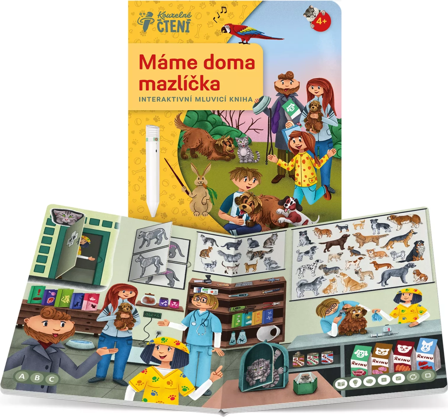 Das Buch Wir haben ein Haustier aus der Reihe Magisches Lesen beantwortet spielerisch Kinderfragen: wie man einen Hund trainiert, was es bedeutet, wenn ein Hamster Männchen macht, warum sich ein Ara kopfüber aufhängt und ob Katzen wirklich zufrieden schnurren. Kinder werden durch die Geschichte vom Tierarzt Oto Ocásek, dem Kater Hubert, dem Hund Chlup und der Hamsterdame Rozárka begleitet – und gemeinsam finden sie heraus, was alles zur Pflege des neuen Welpen gehört, den Kryštůfek mit nach Hause gebracht hat.