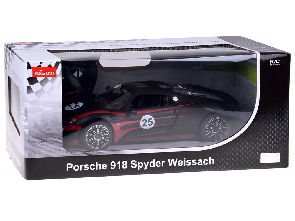 Rastar RC Auto PORSCHE 918 Spyder Weissach 1:14 mit Beleuchtung – schwarz