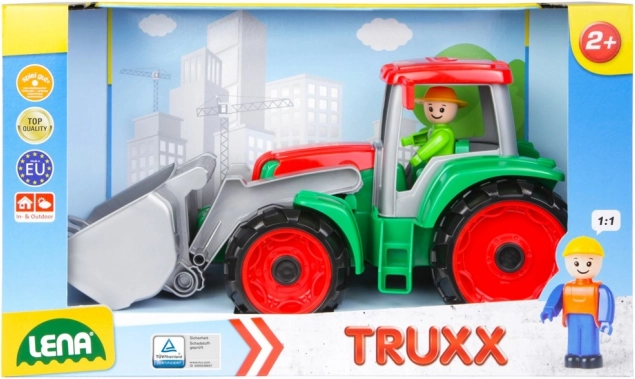 Der farbenfrohe Kinder-Traktor TRUXX mit Frontlader begeistert kleine Baumeister. Dank der Länge von 35 cm, der beweglichen Schaufel, der aufklappbaren Kabine und der beiliegenden Figur bietet er viel Spielspaß zu Hause und im Sandkasten. Hergestellt aus hochwertigem, flexiblem Kunststoff und entspricht europäischen Sicherheitsnormen.