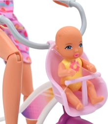Das Set aus Puppen-Mama mit Baby und elegantem Citybike ist eine tolle Wahl für kleine Rollenspiel-Fans. Die Puppe mit langen, kämmbaren Haaren hat bewegliche Gliedmaßen, das Baby ist bereit für die Pflege und das Fahrrad ist mit einem Kindersitz für gemeinsame Ausflüge ausgestattet. Die hochwertige, sichere Verarbeitung mit abgerundeten Kanten sorgt für komfortables und sicheres Spielen.