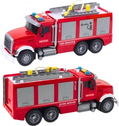 Der realistische Feuerwehrwagen für kleine Retter bietet viele Funktionen, die sofort begeistern. Füllen Sie den Tank, drücken Sie die Pumpe und starten Sie den echten Wasserstrahl. Für authentische Atmosphäre sorgen Lichteffekte sowie Sirenen- und Hupengeräusche. Mit der ausziehbaren Leiter und dem Ausleger mit Düse lassen sich actionreiche Rettungseinsätze spielend inszenieren.
