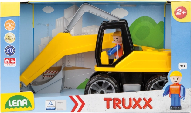 Der Kunststoff-Bagger LENA TRUXX bietet Kindern realistischen Bauspaß. Dank stabiler Konstruktion und widerstandsfähigem Kunststoff eignet er sich gleichermaßen für drinnen und draußen. Die Bedienung ist auf kleine Kinderhände abgestimmt – Kinder heben und senken intuitiv den beweglichen Arm und die Schaufel, drehen den Aufbau und entdecken vielfältige Spielmöglichkeiten.