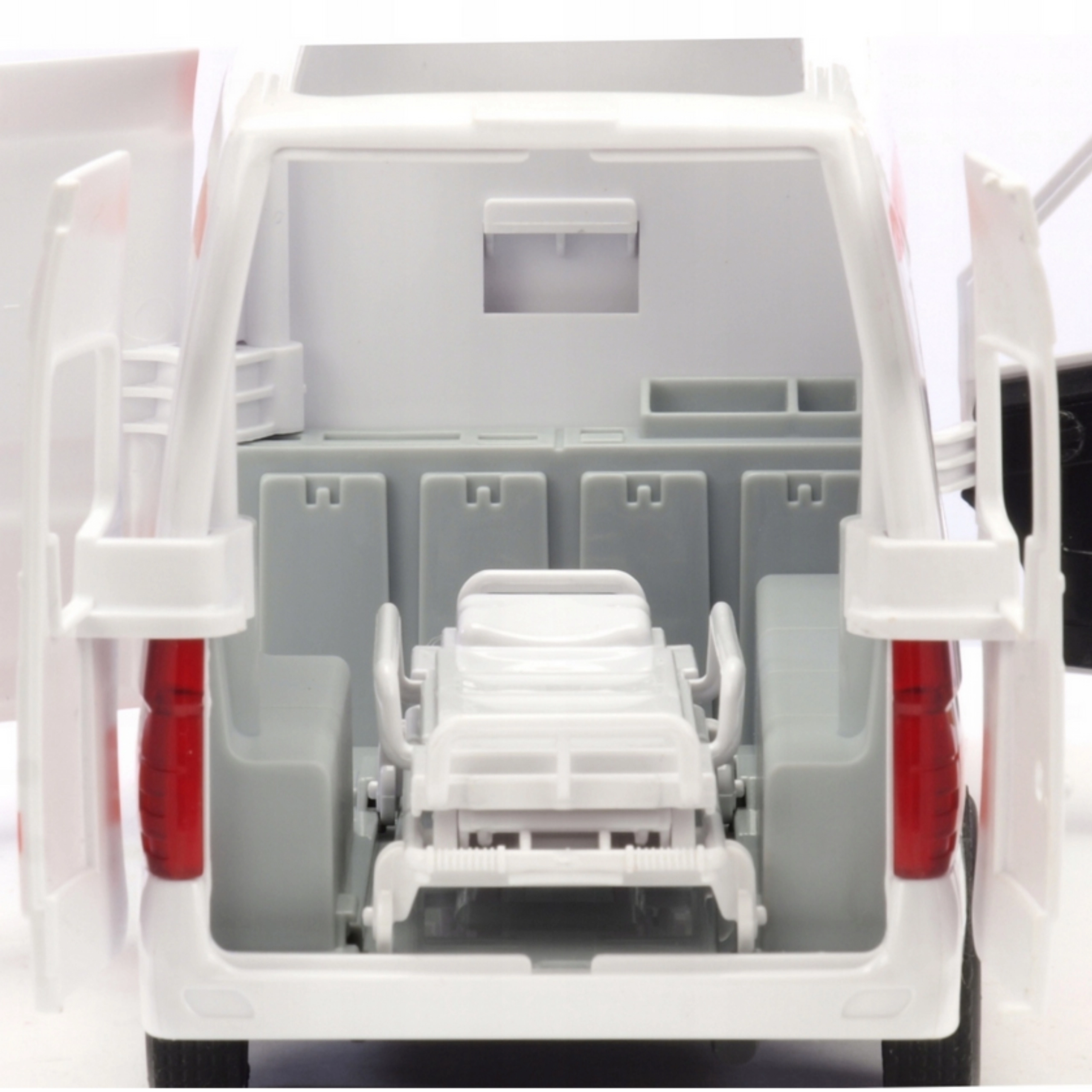 Realistischer Krankenwagen für Kinder mit Trage sowie Licht- und Soundeffekten begeistert kleine Retter. Mit öffnenden Türen (vorn, hinten und Dach), Schwungrad-Antrieb „anschieben und los“, beweglichen Rädern und authentischen Details. Ideales Geschenk für Kinder ab 3 Jahren, fördert Fantasie, Empathie und Feinmotorik.
