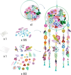 Mit dem DIY-Set der Marke DJECO gestalten Sie einen zauberhaften Sonnenvorhang mit kleinen Vögelchen, der bei jedem Lichteinfall begeistert. Die von Feng Shui inspirierte Dekoration bringt Leichtigkeit, Farben und ein angenehmes Spiel aus Licht in den Raum.