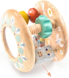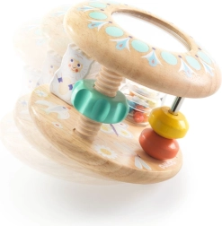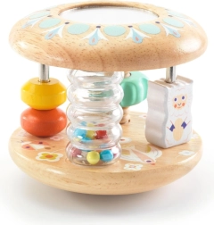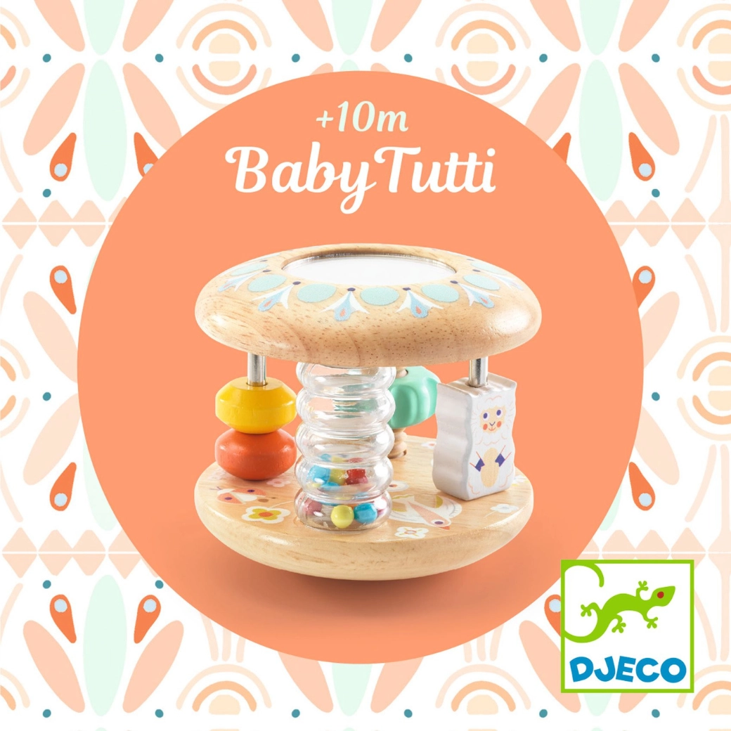 Baby Tutti ist ein durchdachtes Holzspielzeug, das sich leicht greifen lässt, angenehm rasselt und im Liegen rollt. Kinder begeistert der farbige Perlenfluss im transparenten Tubus, das kleine Spiegelchen für erste Entdeckungen und die verschiebbaren Ringe auf den Stäben. Das Spielzeug fördert die Hand-Auge-Koordination und motiviert zum Krabbeln und Drehen.