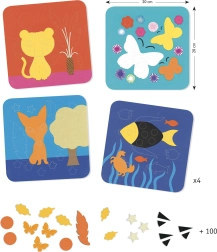 Die ideale Wahl für Kinder, die Tiere und farbenfrohe Collagen lieben. Geeignet für zu Hause, den Kindergarten oder als inspirierende Aktivität für unterwegs.