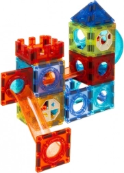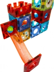 Transparente Paneele verbinden sich dank starker Magnete fest miteinander – Türme, Brücken und Rampen behalten ihre Form und das Spiel läuft ohne unnötige Einstürze.