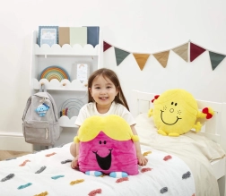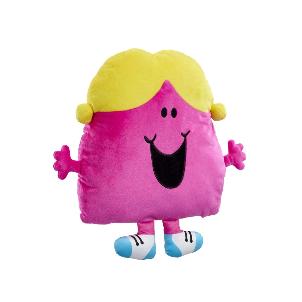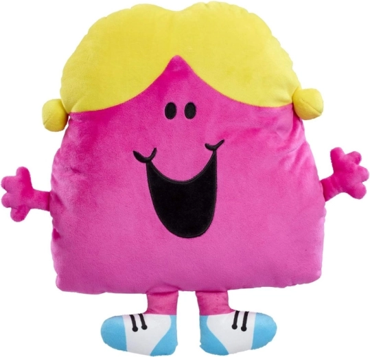 Dieses große Plüschkissen LITTLE MISS CHATTERBOX verzaubert mit fröhlichen Farben – einem pinken Körper, gelben Zöpfchen und blau-weißen „Schühchen“. Die weiche Oberfläche lädt zum Umarmen ein und schenkt Kindern Komfort beim Lesen, Ausruhen und Einschlafen.