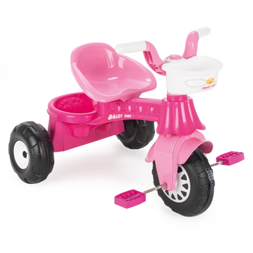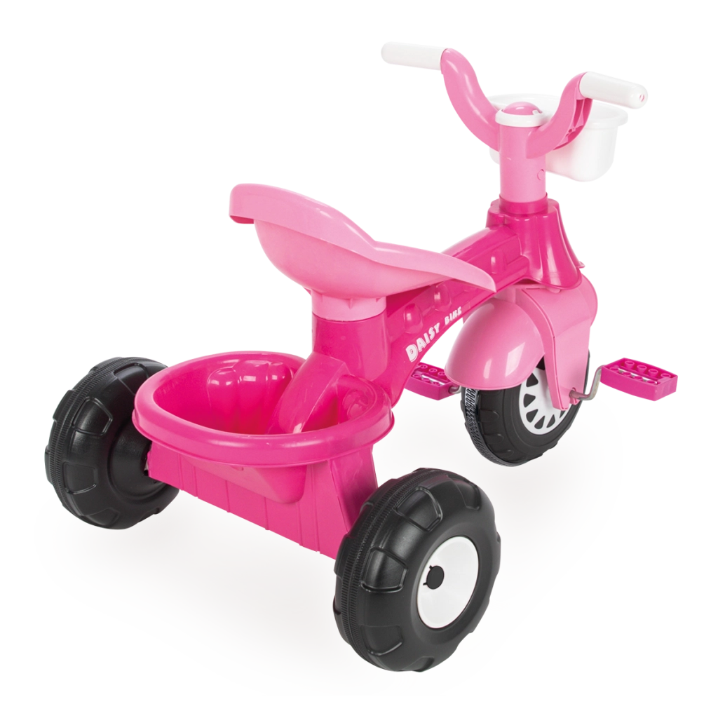 Niedliches Kinderdreirad in der Farbe Rosa mit dem Gänseblümchen-Motiv DAISY begeistert kleine Radfahrer ab ca. 3 Jahren. Leichte und stabile Konstruktion, robuste Kunststoffräder für eine sichere Fahrt und zwei Körbe für Spielzeug machen es zur idealen Wahl für die ersten Ausflüge. Tragfähigkeit bis zu 35 kg.