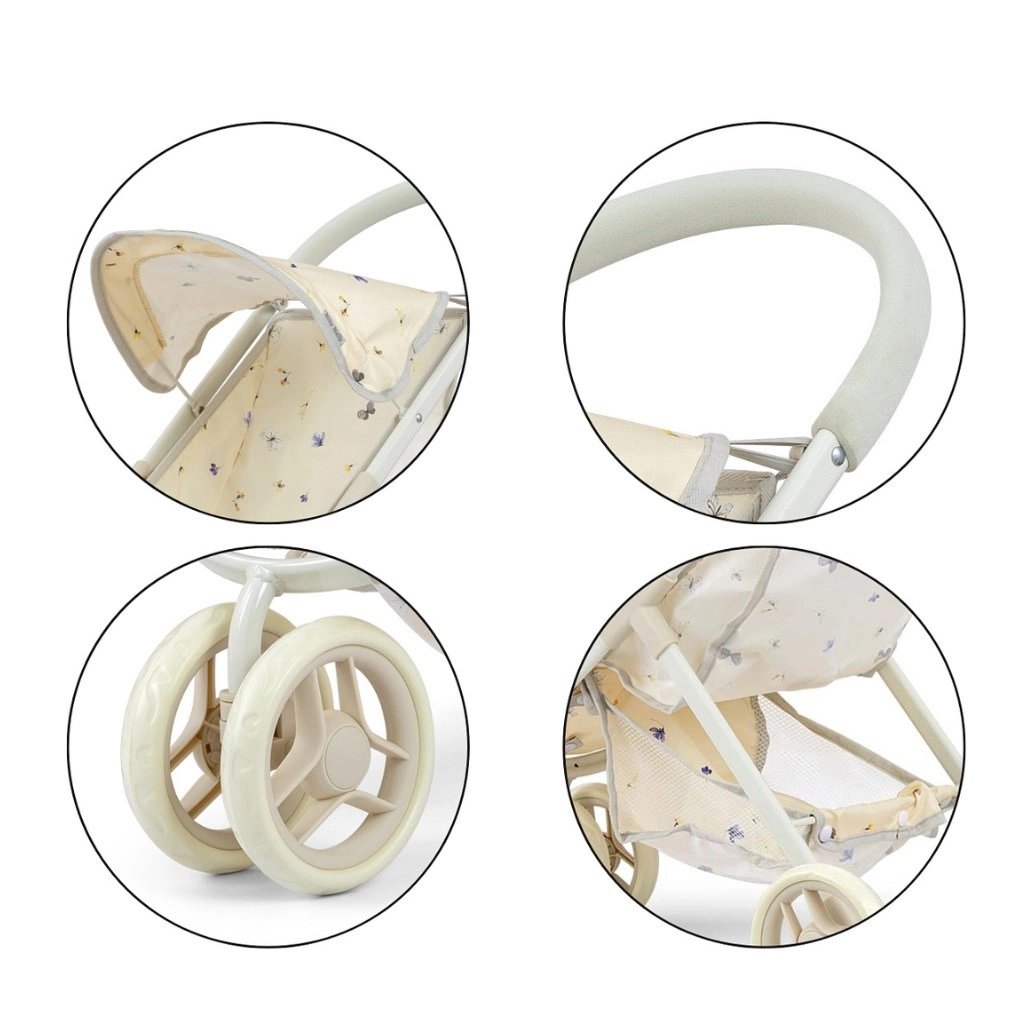 Durchdachte Details wie das klappbare Verdeck, der weich gepolsterte Griff und der geräumige Korb für Zubehör fördern die Fantasie und den täglichen Spielspaß. Das geringe Gewicht von nur 1,2 kg erleichtert das Tragen und Verstauen.