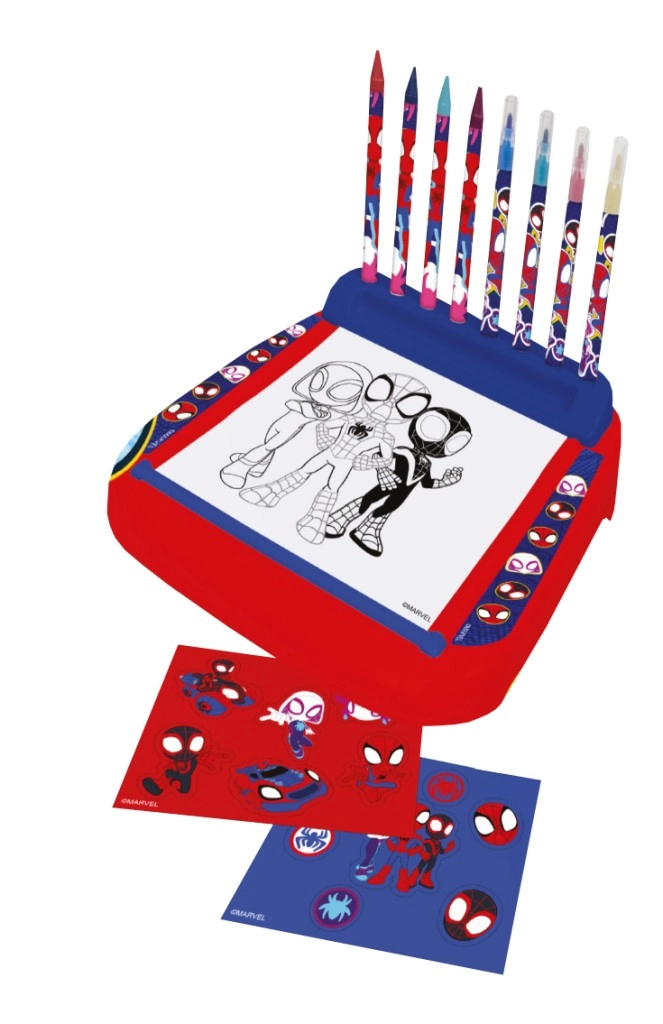 Entdecken Sie den unterhaltsamen Kreativständer mit SPIDEY-Motiven, der Malen in eine bequeme und übersichtliche Aktivität verwandelt. Dank der Ausmalrolle haben Kinder ständig neue Motive zum Ausmalen, während der Ständer das Papier an Ort und Stelle hält und die Arbeitsfläche sauber bleibt.
