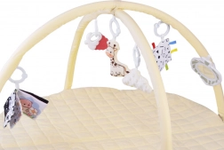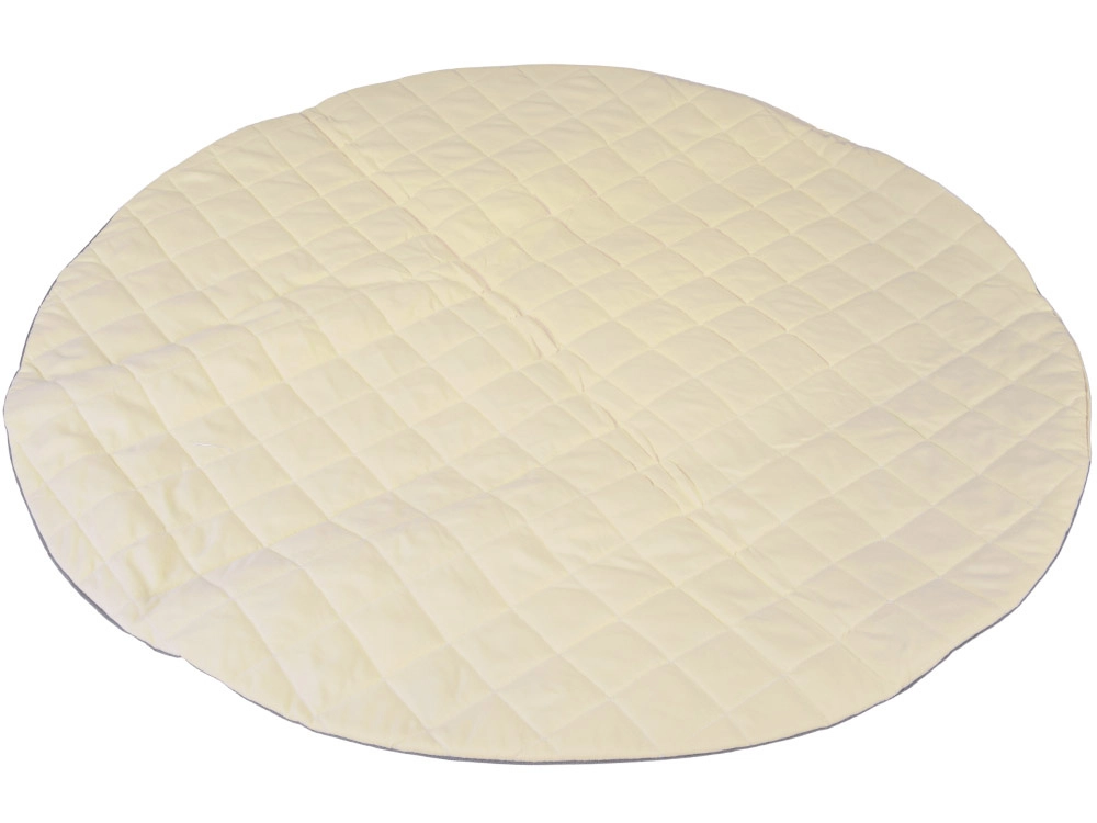 Runde, leicht gepolsterte Decke mit Steppung sorgt für gleichmäßige Dämpfung und thermischen Komfort. Ideal für Bauchlage und die ersten Drehversuche.