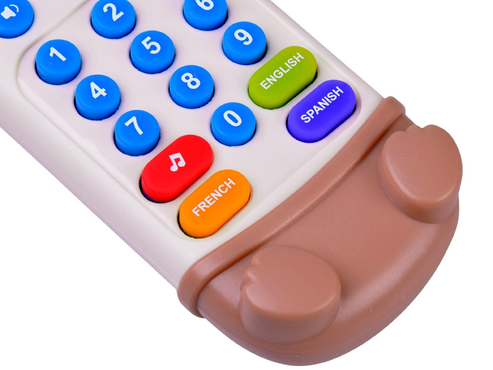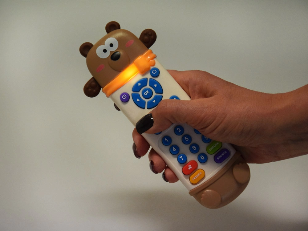 Diese interaktive bärenförmige Fernbedienung sieht wie eine echte Fernbedienung aus, verfügt jedoch zusätzlich über weiche gummierte Ohren und Pfoten als Beißring. Bunte, übersichtliche Tasten laden zum Entdecken ein und die sichere Konstruktion ist für die Kleinsten geeignet.