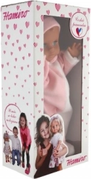 Puppenbaby HAMIRO 40 cm mit festem Körper im weiß-rosa Overall und rosa Mützchen