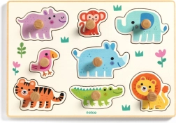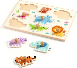 Dieses niedliche Holz-Einlegepuzzle mit Dschungeltieren ist das ideale erste Puzzle für Kleinkinder. Kinder greifen die einzelnen Teile leicht und trainieren durch das Einsetzen in die richtigen Aussparungen ihr logisches Denken und ihre Geduld. Bunte Illustrationen begeistern auf den ersten Blick und unterstützen das visuelle Wahrnehmen.