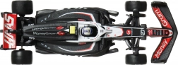 Getreue Umsetzung der HAAS-Lackierung mit weißen und roten Akzenten auf schwarzer Basis inklusive detaillierter Sponsorenlogos.