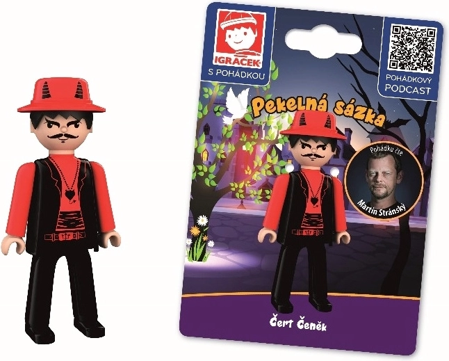 Führen Sie Kinder in eine Märchenwelt, in der Teufel Čeněk und Engel Adámek in der Geschichte Höllische Wette aufeinandertreffen. Das Hörmärchen lässt sich einfach durch das Scannen des QR-Codes auf der Verkaufskarte abspielen oder über den Wegweiser www.pohadkaigracek.cz finden. Figur und Geschichte unterstützen Kreativität und Erzählen – ideal für gemeinsame Momente und selbstständiges Spielen.