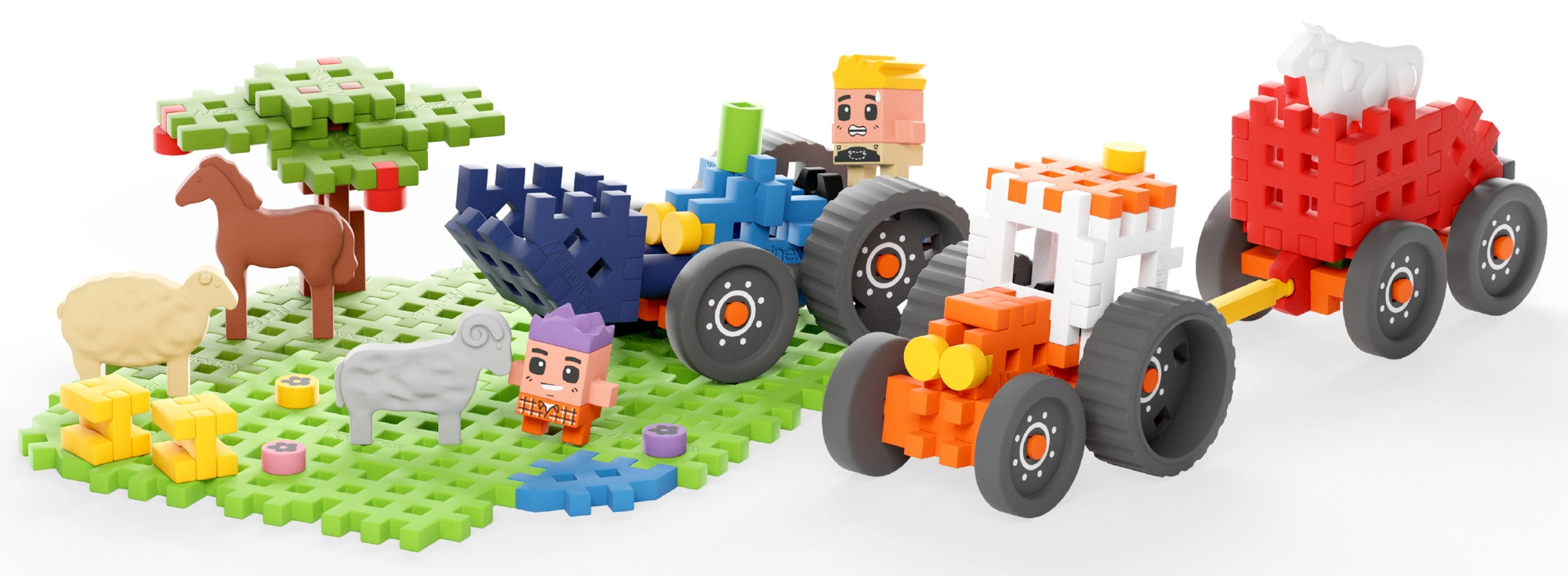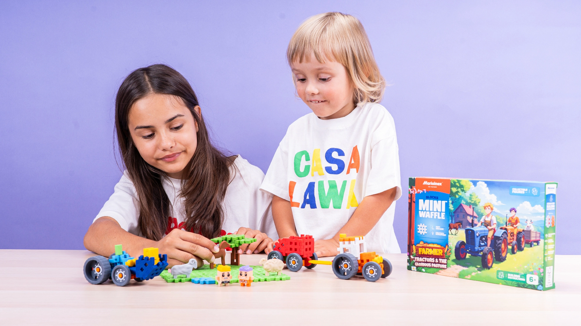 Das Set Marioinex Mini Waffle Farmer – Traktoren und Wiese ist ideal für kleine Konstrukteure und Liebhaber des Landlebens. Aus dem Inhalt bauen Sie 2 Fahrzeuge, einen Baum, einen Teil der Weide und es gibt natürlich auch Figuren von Personen und Tieren. Die Teile lassen sich leicht verbinden, fühlen sich angenehm an und werden mit Blick auf Nachhaltigkeit hergestellt.