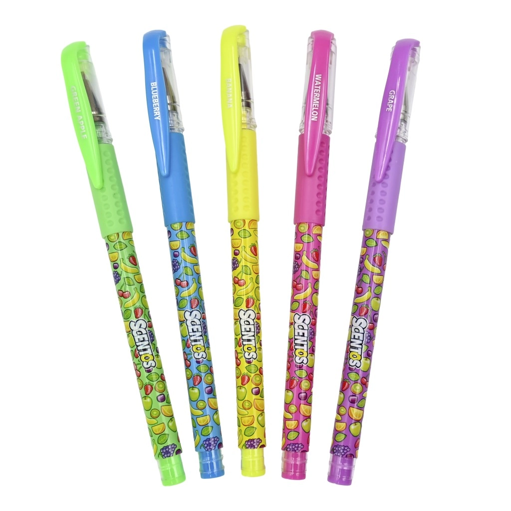 Im Set finden Sie fünf Düfte und Farben: Grün (Green Apple), Blau (Blueberry), Gelb (Banana), Rosa (Watermelon) und Lila (Grape). Die Stifte bestehen aus ungiftigen Materialien und erfüllen die Anforderungen an sichere Schulmaterialien.