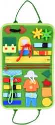 Schnüren, Reißverschlüsse, Schnallen, Knöpfe, Klett-Formen, Küche, Kinderzimmer, Garten und Kalender – ein vielfältiges Angebot an Aktivitäten zur Förderung von Motorik und Logik.