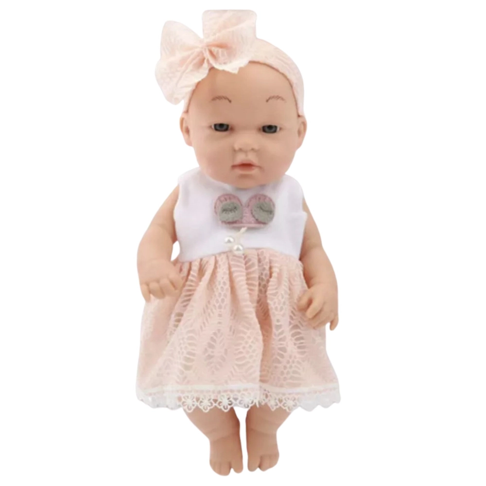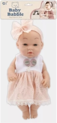 Diese Baby-Puppe bezaubert mit einem eleganten rosa Kleid mit Spitzenbesatz und einem passenden Haarband mit großer Schleife. Zarte Gesichtszüge und angenehme Materialien vermitteln den Eindruck eines echten Babys, das Kinder schnell ins Herz schließen.