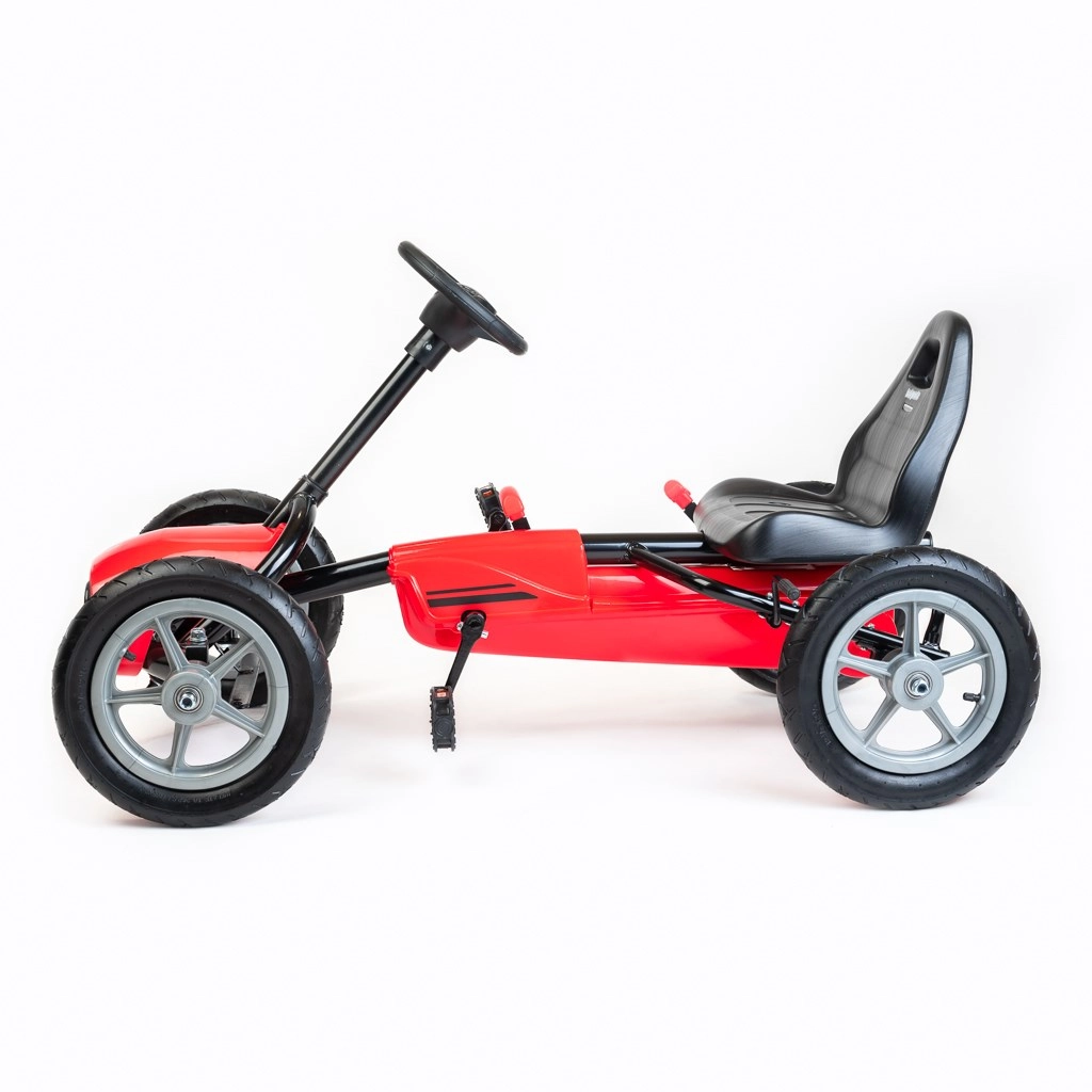 Das Tret-Gokart BABY MIX Buggy ist ein großartiger Begleiter für Kinder, die Bewegung und Freizeitaktivitäten im Freien lieben. Der ergonomische Sitz mit zwei Verstellstufen des Abstands zum Lenkrad sorgt für Komfort, während die stabile Metallkonstruktion mit Kunststoffabdeckungen Haltbarkeit und einen sportlichen Look bietet. Große aufblasbare Räder mit Kugellagern gewährleisten eine ruhige Fahrt auf Asphalt und befestigten Wegen.